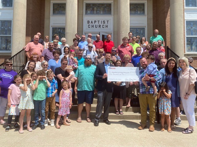 Second Baptist Church of Bowling Green, Missouri recently contributed $50,000 to support HLGU. Pastor Mark West and members are pictured presenting a check to Vice President for Student Life Josh Pierce. - Salem/Wyaconda Southern Baptist Association, Missouri
